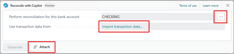 • Select Reconcile with Copilot via the Copilot icon.